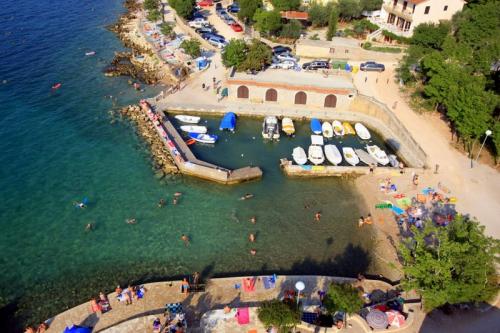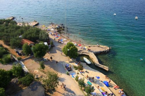 Die Bucht Rova hat mehrere kleine Kiesstraende, guenstig vor allem fuer die Kinder, dann einen kleinen Hafen mit Bootsliegeplaetzen (kostenpflichtig, Boote bis maximal 5,5 Meter Laenge) und Aufbewahrungsraeume fuer die Strandaccessoires (Liegen, Luftmatratzen usw.). Am Strand sind auch Restorants, eine Pizzeria und Kaffeehaeuser, wo Sie im Schatten alter Olivenbaeume Erfrischung von der Sonnenhitze finden koennen. Den Meeresufer entlang fuehrt ein Spazierweg bis zum Zentrum, welchen Sie in 20 Minuten zuruecklegen koennen.